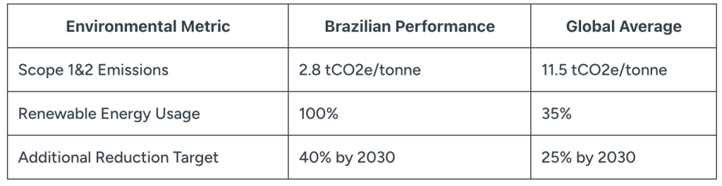 These performance differentials create substantial competitive advantages in markets where environmental credentials influence purchasing decisions. The gap between Brazilian performance and global averages provides compelling value propositions for customers seeking to reduce their supply chain carbon footprints.