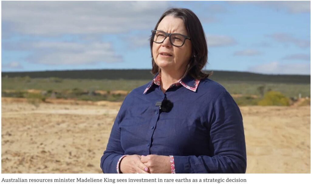 “The open international market in critical minerals and rare earths is a mirage. It doesn’t exist. And the reason it doesn’t exist is because there is one supplier of these materials and they have the wherewithal to change where the market goes, whether that be in pricing or supply,” Australia’s resources minister Madeleine King says.